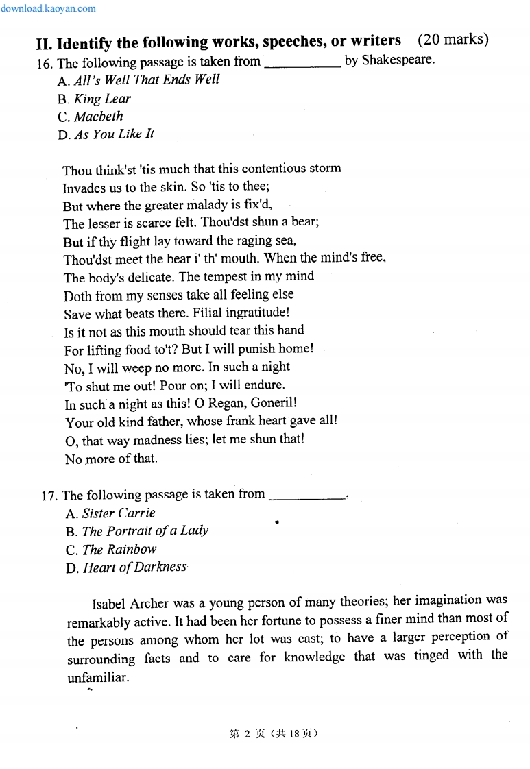大连外国语学院英美文学2006年考研试题猴哥6个月前发布关注私信1.23MB18页07136大连外国语学院英美文学2006年考研试题此内容为免费资源,请登录后查看¥0 登录查看免费资源 第1页 / 共18页 第2页 / 共18页 第3页 / 共18页 第4页 / 共18页 第5页 / 共18页 该文档为免费文档,您可直接下载完整版进行阅读 © 版权声明文章版权归作者所有,未经允许请勿转载。THE END考研专业课 喜欢就支持一下吧点赞36赞赏 分享QQ空间微博QQ好友海报分享复制链接收藏