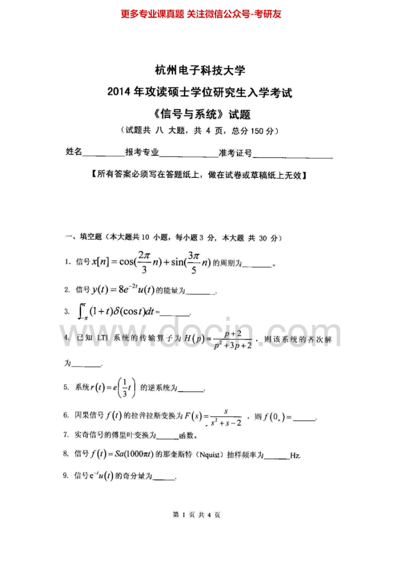杭州电子科技大学843信号与系统2000、2002-2015考研真题汇编猴哥6个月前发布关注私信17.41MB58页05658杭州电子科技大学843信号与系统2000、2002-2015考研真题汇编此内容为免费资源,请登录后查看¥0 登录查看免费资源 第1页 / 共58页 第2页 / 共58页 第3页 / 共58页 第4页 / 共58页 第5页 / 共58页 该文档为免费文档,您可直接下载完整版进行阅读 © 版权声明文章版权归作者所有,未经允许请勿转载。THE END《杭州电子科技大学》(843)信号与系统考研资料考研专业课 喜欢就支持一下吧点赞58赞赏 分享QQ空间微博QQ好友海报分享复制链接收藏