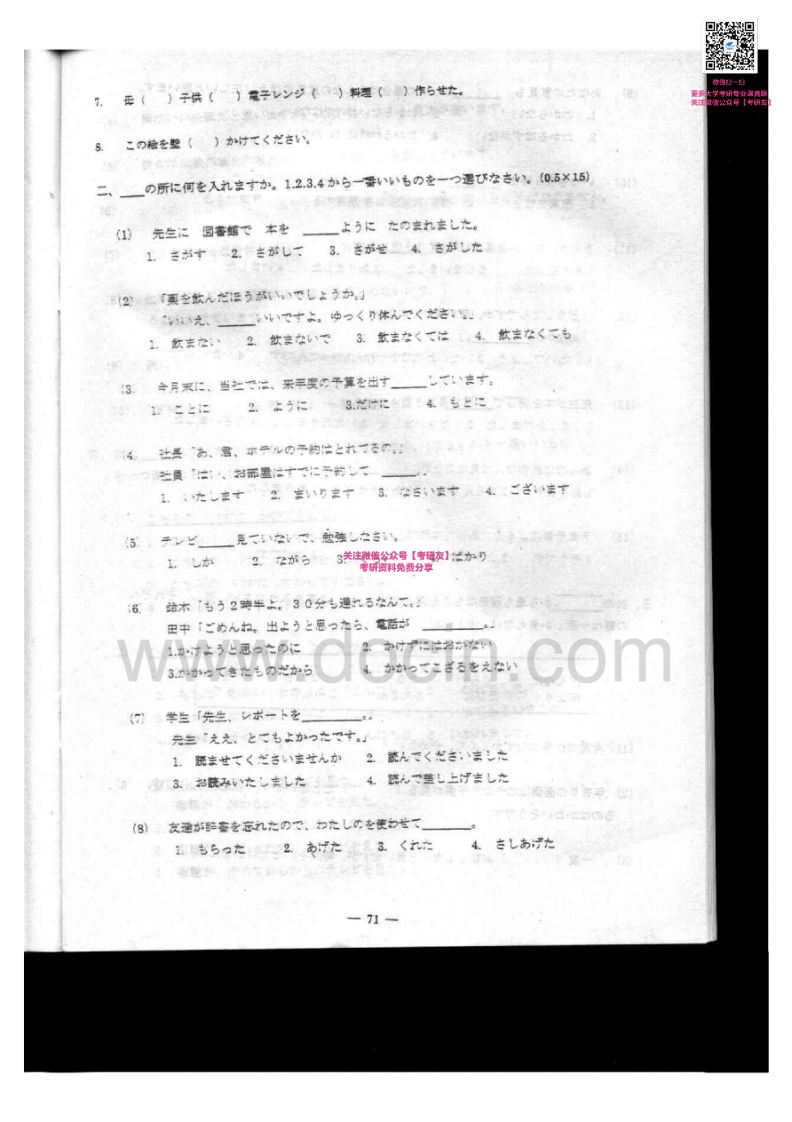 东北财经大学外国语言学及应用语言学历年真题二外日语2003-20132005-2006、2008-2009有答案考研真题汇编猴哥6个月前发布关注私信43.94MB129页06847东北财经大学外国语言学及应用语言学历年真题二外日语2003-20132005-2006、2008-2009有答案考研真题汇编此内容为免费资源,请登录后查看¥0 登录查看免费资源 第1页 / 共129页 第2页 / 共129页 第3页 / 共129页 第4页 / 共129页 第5页 / 共129页 该文档为免费文档,您可直接下载完整版进行阅读 © 版权声明文章版权归作者所有,未经允许请勿转载。THE END考研专业课 喜欢就支持一下吧点赞47赞赏 分享QQ空间微博QQ好友海报分享复制链接收藏