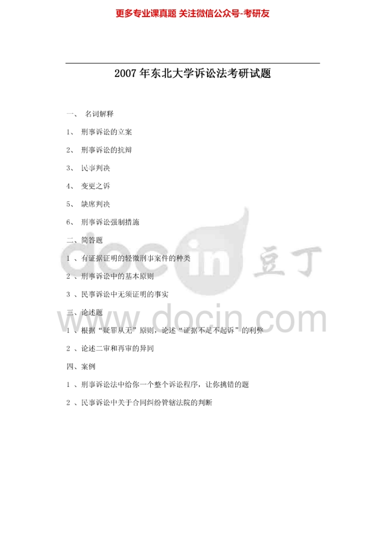 东北大学历年真题诉讼法2003-2007考研真题汇编.Image.Marked猴哥6个月前发布关注私信0.22MB5页06825东北大学历年真题诉讼法2003-2007考研真题汇编.Image.Marked此内容为免费资源,请登录后查看¥0 登录查看免费资源 第1页 / 共5页 第2页 / 共5页 第3页 / 共5页 第4页 / 共5页 第5页 / 共5页 已完成全部阅读,共5页 © 版权声明文章版权归作者所有,未经允许请勿转载。THE END考研专业课 喜欢就支持一下吧点赞25赞赏 分享QQ空间微博QQ好友海报分享复制链接收藏