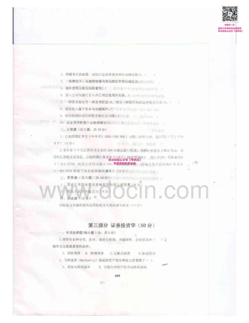 东北财经大学431金融学综合2012-2014考研真题汇编猴哥6个月前发布关注私信2.40MB8页09661东北财经大学431金融学综合2012-2014考研真题汇编此内容为免费资源,请登录后查看¥0 登录查看免费资源 第1页 / 共8页 第2页 / 共8页 第3页 / 共8页 第4页 / 共8页 第5页 / 共8页 该文档为免费文档,您可直接下载完整版进行阅读 © 版权声明文章版权归作者所有,未经允许请勿转载。THE END《东北财经大学》(431)金融学综合考研资料考研专业课 喜欢就支持一下吧点赞61赞赏 分享QQ空间微博QQ好友海报分享复制链接收藏