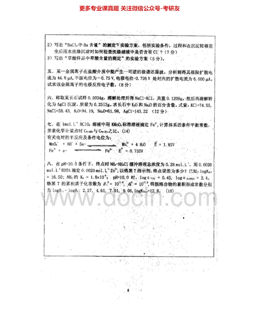 东北师范大学812分析化学2006-2007考研真题汇编.Image.Marked猴哥6个月前发布关注私信2.45MB8页05312东北师范大学812分析化学2006-2007考研真题汇编.Image.Marked此内容为免费资源,请登录后查看¥0 登录查看免费资源 第1页 / 共8页 第2页 / 共8页 第3页 / 共8页 第4页 / 共8页 第5页 / 共8页 该文档为免费文档,您可直接下载完整版进行阅读 © 版权声明文章版权归作者所有,未经允许请勿转载。THE END《东北师范大学》(812)教学设计基础考研资料考研专业课 喜欢就支持一下吧点赞12赞赏 分享QQ空间微博QQ好友海报分享复制链接收藏