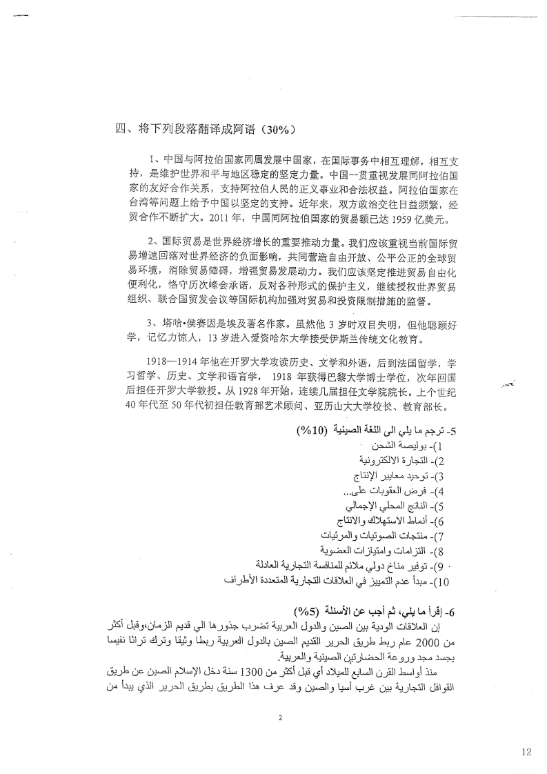 对外经济贸易大学878专业阿拉伯语2013考研真题