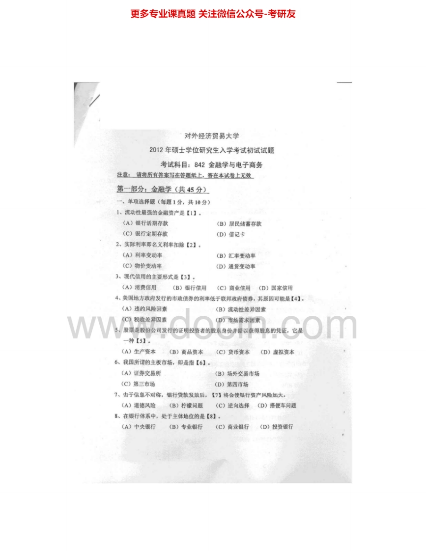 对外经济贸易大学842金融学与电子商务2011-2014考研真题汇编.Image.Marked猴哥6个月前发布关注私信2.88MB12页07251对外经济贸易大学842金融学与电子商务2011-2014考研真题汇编.Image.Marked此内容为免费资源,请登录后查看¥0 登录查看免费资源 第1页 / 共12页 第2页 / 共12页 第3页 / 共12页 第4页 / 共12页 第5页 / 共12页 该文档为免费文档,您可直接下载完整版进行阅读 © 版权声明文章版权归作者所有,未经允许请勿转载。THE END考研专业课 喜欢就支持一下吧点赞51赞赏 分享QQ空间微博QQ好友海报分享复制链接收藏