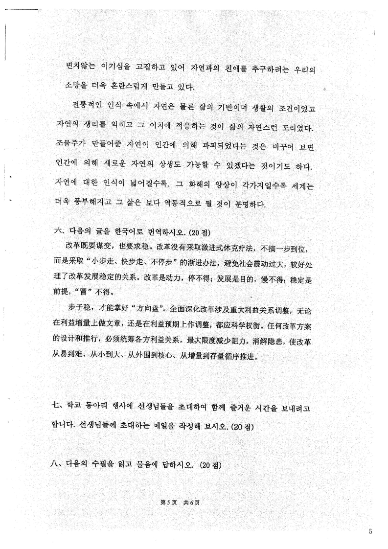 对外经济贸易大学870专业朝鲜语2015考研真题
