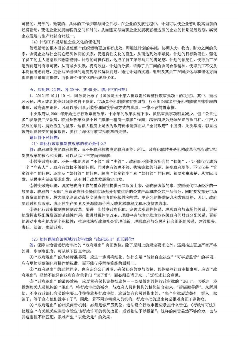 对外经济贸易大学780公共管理基础答案2013年考研真题答案
