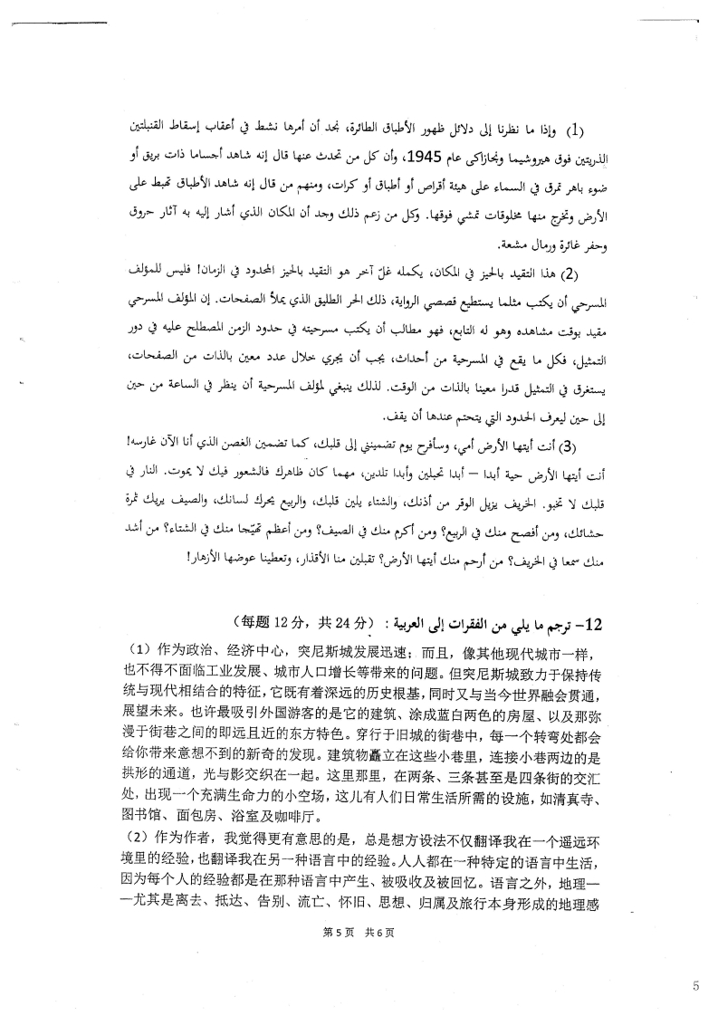 对外经济贸易大学778基础阿拉伯语2015考研真题