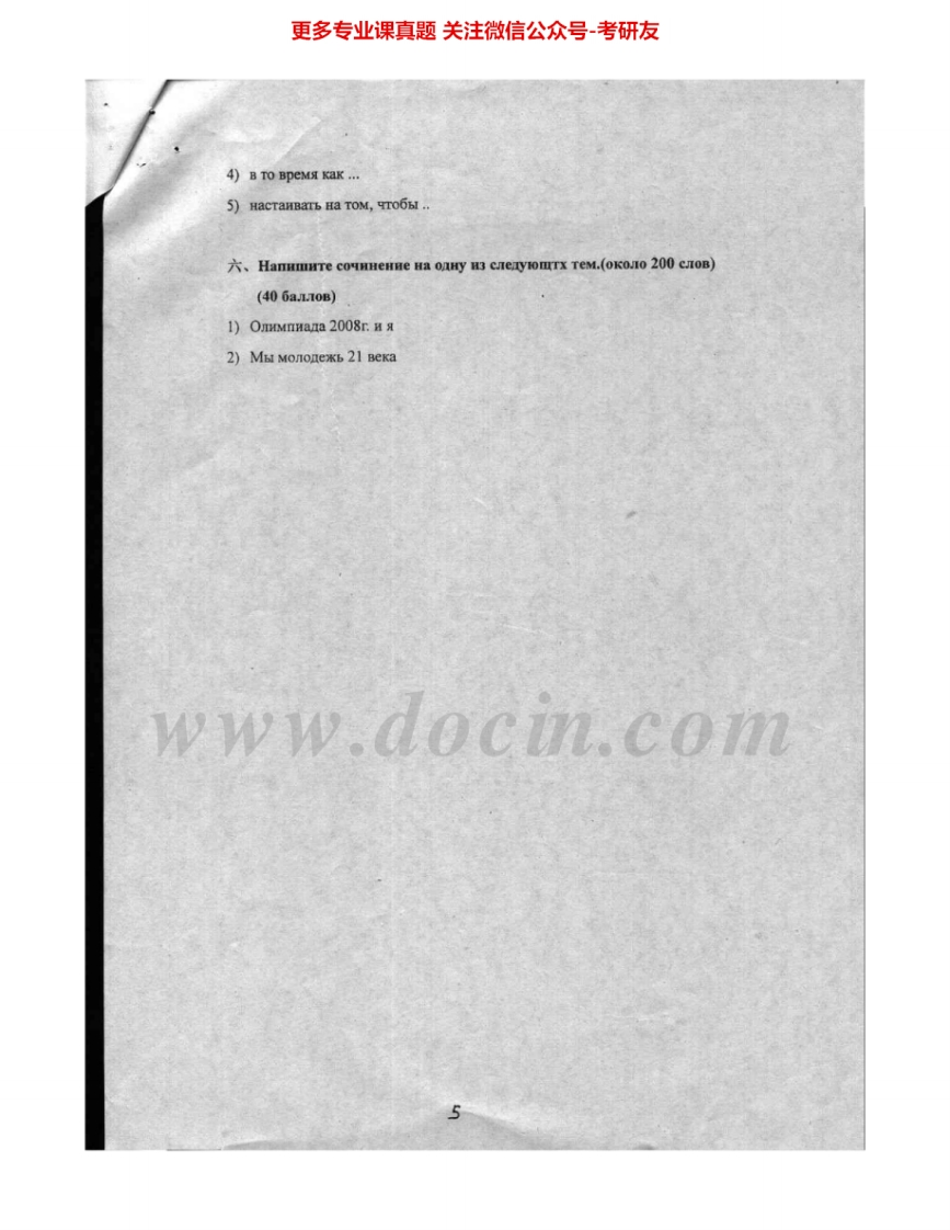 对外经济贸易大学772基础俄语2004-2010考研真题汇编.Image.Marked猴哥6个月前发布关注私信12.30MB40页08765对外经济贸易大学772基础俄语2004-2010考研真题汇编.Image.Marked此内容为免费资源,请登录后查看¥0 登录查看免费资源 第1页 / 共40页 第2页 / 共40页 第3页 / 共40页 第4页 / 共40页 第5页 / 共40页 该文档为免费文档,您可直接下载完整版进行阅读 © 版权声明文章版权归作者所有,未经允许请勿转载。THE END考研专业课 喜欢就支持一下吧点赞65赞赏 分享QQ空间微博QQ好友海报分享复制链接收藏