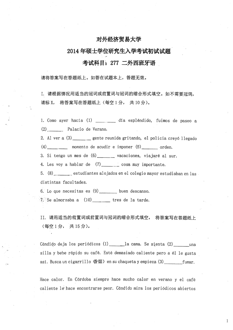 对外经济贸易大学277二外西班牙语2014考研真题-学习资源网 - 分享优质学习资料