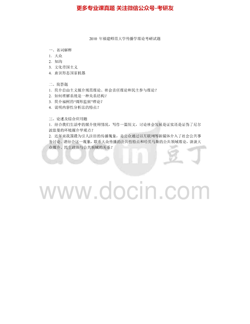 福建师范大学872传播学理论2009-2010考研真题汇编猴哥6个月前发布关注私信99.34KB2页07759福建师范大学872传播学理论2009-2010考研真题汇编此内容为免费资源,请登录后查看¥0 登录查看免费资源 第1页 / 共2页 第2页 / 共2页 已完成全部阅读,共2页 © 版权声明文章版权归作者所有,未经允许请勿转载。THE END考研专业课 喜欢就支持一下吧点赞59赞赏 分享QQ空间微博QQ好友海报分享复制链接收藏
