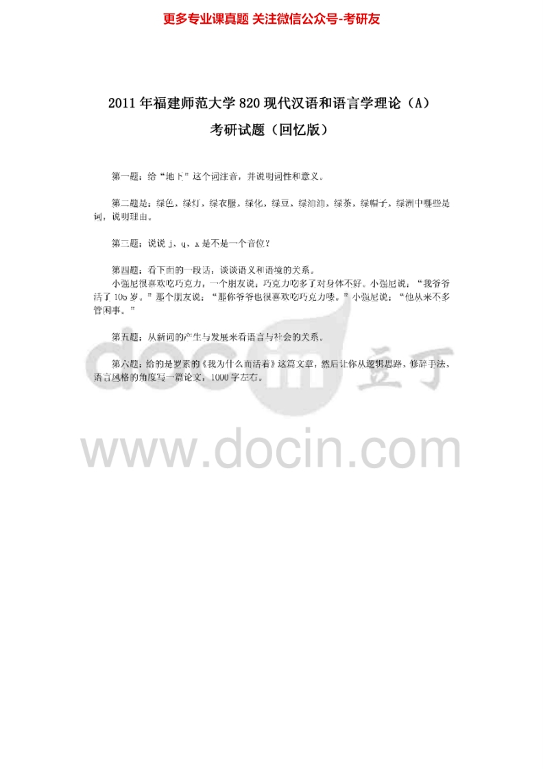 福建师范大学现代汉语和语言学理论(A)2004-2006、2011考研真题汇编猴哥6个月前发布关注私信0.57MB4页03619福建师范大学现代汉语和语言学理论(A)2004-2006、2011考研真题汇编此内容为免费资源,请登录后查看¥0 登录查看免费资源 第1页 / 共4页 第2页 / 共4页 第3页 / 共4页 第4页 / 共4页 已完成全部阅读,共4页 © 版权声明文章版权归作者所有,未经允许请勿转载。THE END考研专业课 喜欢就支持一下吧点赞19赞赏 分享QQ空间微博QQ好友海报分享复制链接收藏