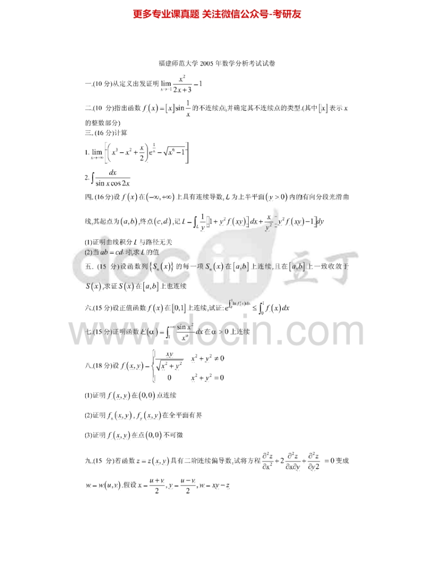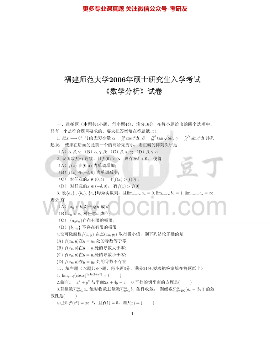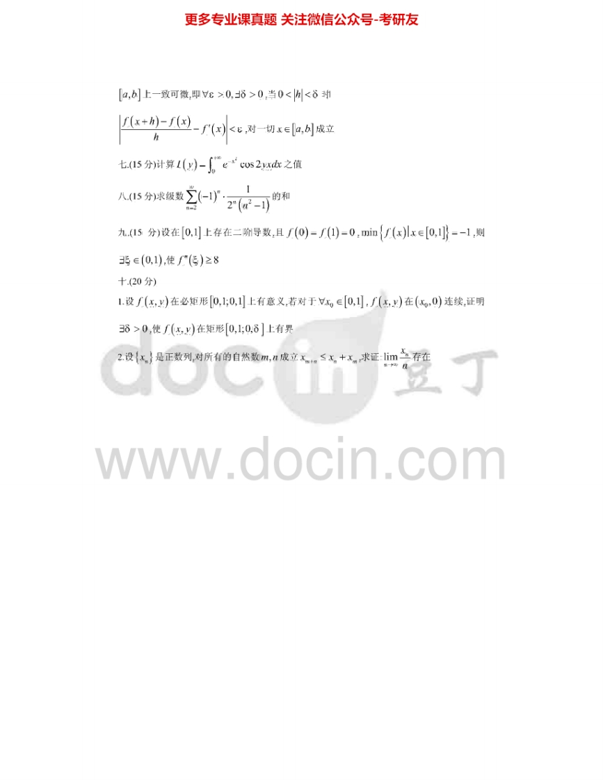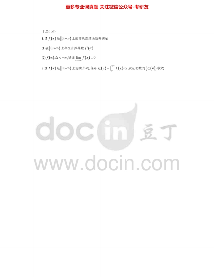 福建师范大学838线性代数与数学分析:数学分析2004-2006考研真题汇编猴哥6个月前发布关注私信0.33MB6页09345福建师范大学838线性代数与数学分析:数学分析2004-2006考研真题汇编此内容为免费资源,请登录后查看¥0 登录查看免费资源 第1页 / 共6页 第2页 / 共6页 第3页 / 共6页 第4页 / 共6页 第5页 / 共6页 该文档为免费文档,您可直接下载完整版进行阅读 © 版权声明文章版权归作者所有,未经允许请勿转载。THE END考研专业课 喜欢就支持一下吧点赞45赞赏 分享QQ空间微博QQ好友海报分享复制链接收藏
