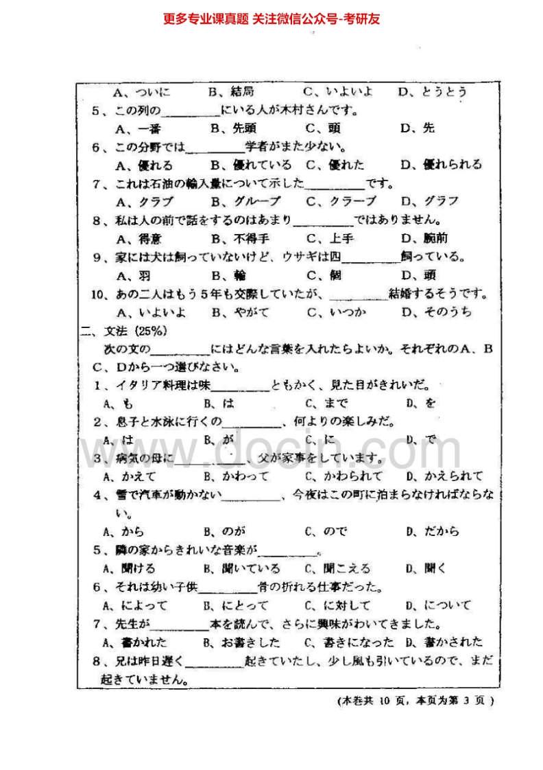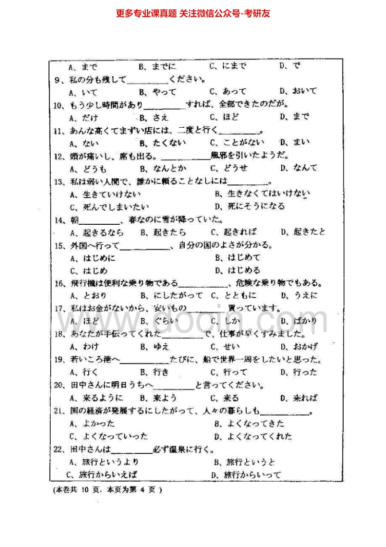 福建师范大学日语(自)历年真题2004-2005、2009-2010考研真题汇编猴哥6个月前发布关注私信16.28MB37页03129福建师范大学日语(自)历年真题2004-2005、2009-2010考研真题汇编此内容为免费资源,请登录后查看¥0 登录查看免费资源 第1页 / 共37页 第2页 / 共37页 第3页 / 共37页 第4页 / 共37页 第5页 / 共37页 该文档为免费文档,您可直接下载完整版进行阅读 © 版权声明文章版权归作者所有,未经允许请勿转载。THE END考研专业课 喜欢就支持一下吧点赞29赞赏 分享QQ空间微博QQ好友海报分享复制链接收藏