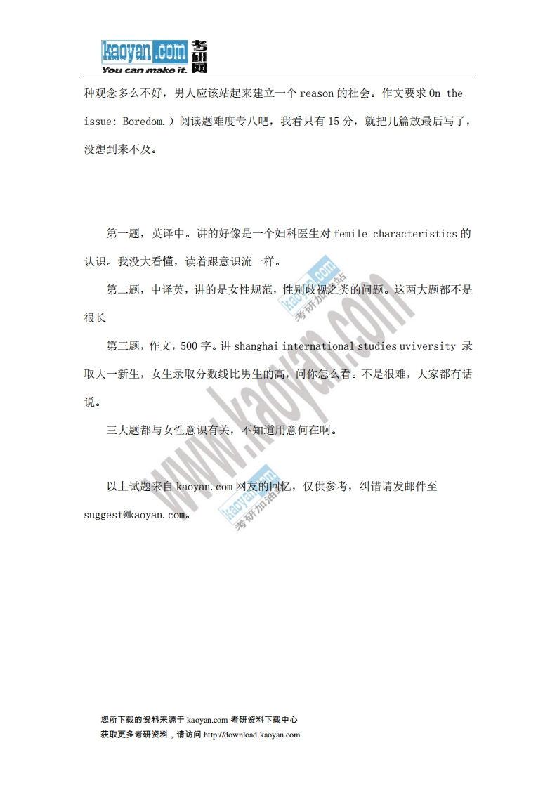 复旦大学708基础英语2013年考研试题(回忆版)猴哥6个月前发布关注私信0.12MB2页05416复旦大学708基础英语2013年考研试题(回忆版)此内容为免费资源,请登录后查看¥0 登录查看免费资源 第1页 / 共2页 第2页 / 共2页 已完成全部阅读,共2页 © 版权声明文章版权归作者所有,未经允许请勿转载。THE END《复旦大学》(708)基础英语考研资料考研专业课 喜欢就支持一下吧点赞16赞赏 分享QQ空间微博QQ好友海报分享复制链接收藏