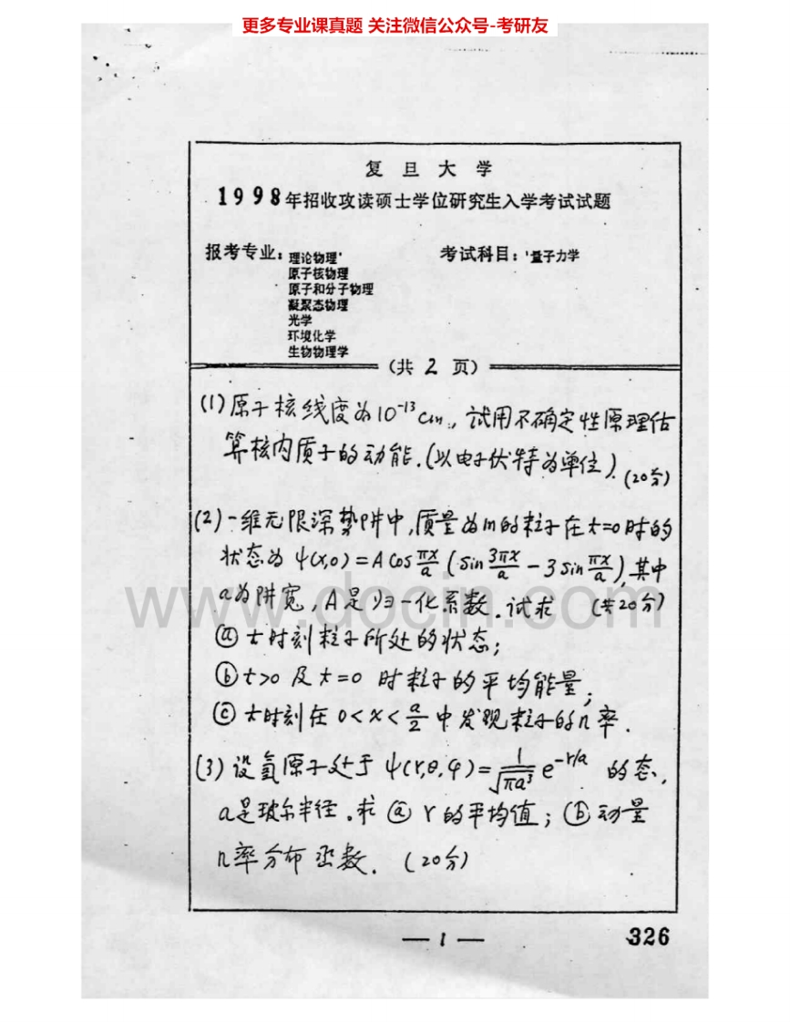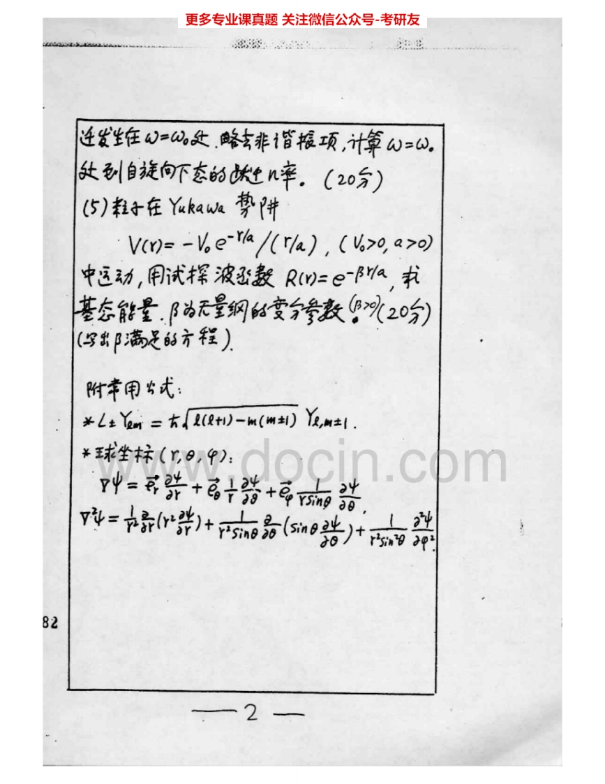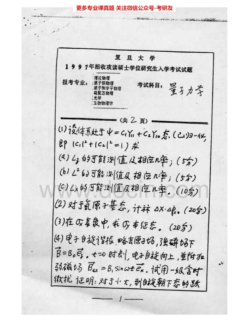 复旦大学720量子力学1996-2006考研真题汇编猴哥6个月前发布关注私信6.77MB20页06037复旦大学720量子力学1996-2006考研真题汇编此内容为免费资源,请登录后查看¥0 登录查看免费资源 第1页 / 共20页 第2页 / 共20页 第3页 / 共20页 第4页 / 共20页 第5页 / 共20页 该文档为免费文档,您可直接下载完整版进行阅读 © 版权声明文章版权归作者所有,未经允许请勿转载。THE END《复旦大学》(720)量子力学考研资料考研专业课 喜欢就支持一下吧点赞37赞赏 分享QQ空间微博QQ好友海报分享复制链接收藏