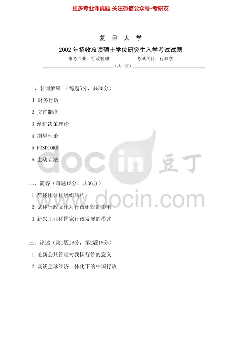 复旦大学行政学历年真题(2002-2005)考研真题汇编.Image.Marked猴哥6个月前发布关注私信4.52MB39页09458复旦大学行政学历年真题(2002-2005)考研真题汇编.Image.Marked此内容为免费资源,请登录后查看¥0 登录查看免费资源 第1页 / 共39页 第2页 / 共39页 第3页 / 共39页 第4页 / 共39页 第5页 / 共39页 该文档为免费文档,您可直接下载完整版进行阅读 © 版权声明文章版权归作者所有,未经允许请勿转载。THE END考研专业课 喜欢就支持一下吧点赞58赞赏 分享QQ空间微博QQ好友海报分享复制链接收藏