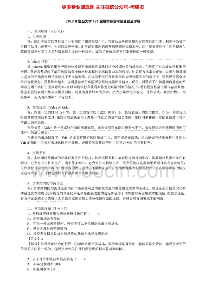 复旦大学金融学综合(2011-2013)考研真题汇编.Image.Marked猴哥6个月前发布关注私信4.52MB15页03356复旦大学金融学综合(2011-2013)考研真题汇编.Image.Marked此内容为免费资源,请登录后查看¥0 登录查看免费资源 第1页 / 共15页 第2页 / 共15页 第3页 / 共15页 第4页 / 共15页 第5页 / 共15页 该文档为免费文档,您可直接下载完整版进行阅读 © 版权声明文章版权归作者所有,未经允许请勿转载。THE END考研专业课 喜欢就支持一下吧点赞56赞赏 分享QQ空间微博QQ好友海报分享复制链接收藏