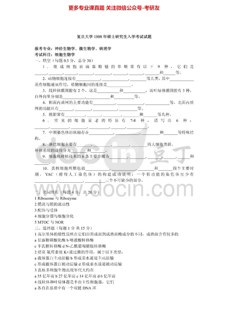 复旦大学细胞生物学1997-2002遗传学与细胞生物学2003-2005考研真题汇编.Image.Marked猴哥6个月前发布关注私信5.59MB26页03722复旦大学细胞生物学1997-2002遗传学与细胞生物学2003-2005考研真题汇编.Image.Marked此内容为免费资源,请登录后查看¥0 登录查看免费资源 第1页 / 共26页 第2页 / 共26页 第3页 / 共26页 第4页 / 共26页 第5页 / 共26页 该文档为免费文档,您可直接下载完整版进行阅读 © 版权声明文章版权归作者所有,未经允许请勿转载。THE END考研专业课 喜欢就支持一下吧点赞22赞赏 分享QQ空间微博QQ好友海报分享复制链接收藏