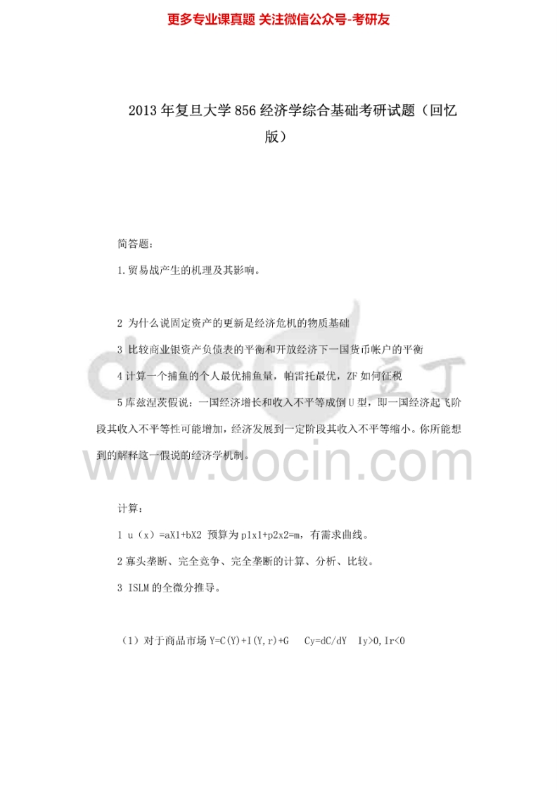 复旦大学经济学综合基础(1993-2014)考研真题汇编.Image.Marked猴哥6个月前发布关注私信32.99MB116页09354复旦大学经济学综合基础(1993-2014)考研真题汇编.Image.Marked此内容为免费资源,请登录后查看¥0 登录查看免费资源 第1页 / 共116页 第2页 / 共116页 第3页 / 共116页 第4页 / 共116页 第5页 / 共116页 该文档为免费文档,您可直接下载完整版进行阅读 © 版权声明文章版权归作者所有,未经允许请勿转载。THE END考研专业课 喜欢就支持一下吧点赞54赞赏 分享QQ空间微博QQ好友海报分享复制链接收藏