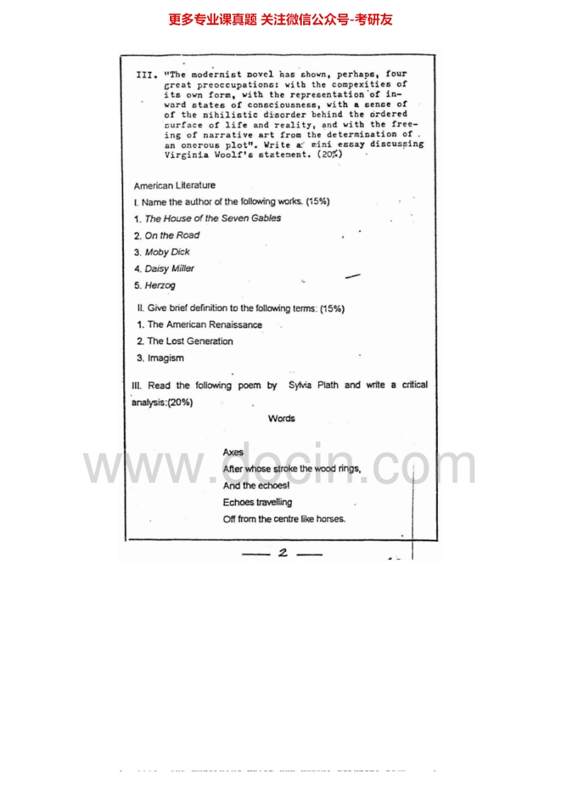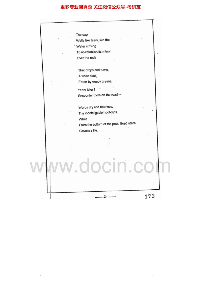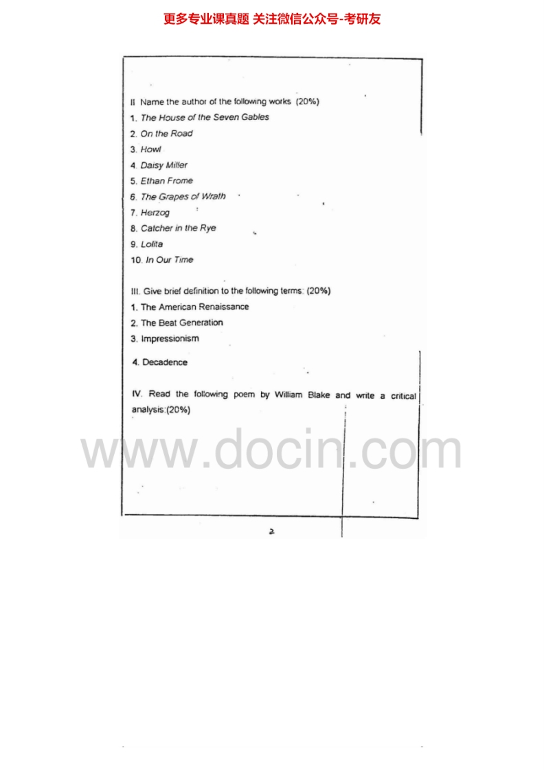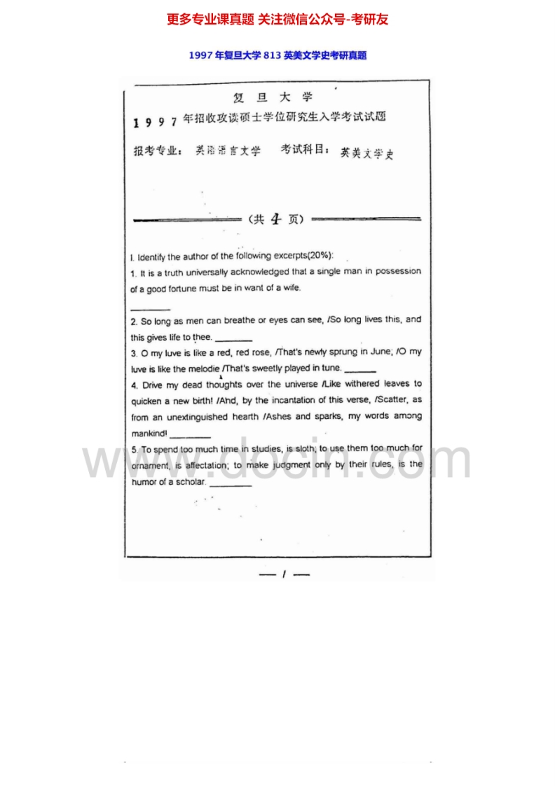 复旦大学813英美文学史1996-1998考研真题汇编.Image.Marked猴哥6个月前发布关注私信1.85MB11页09523复旦大学813英美文学史1996-1998考研真题汇编.Image.Marked此内容为免费资源,请登录后查看¥0 登录查看免费资源 第1页 / 共11页 第2页 / 共11页 第3页 / 共11页 第4页 / 共11页 第5页 / 共11页 该文档为免费文档,您可直接下载完整版进行阅读 © 版权声明文章版权归作者所有,未经允许请勿转载。THE END《复旦大学》(813)英美文学和语言学综合基础考研资料考研专业课 喜欢就支持一下吧点赞23赞赏 分享QQ空间微博QQ好友海报分享复制链接收藏