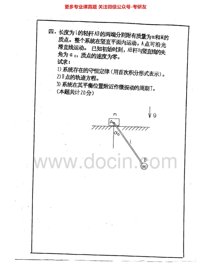 复旦大学848理论力学1995-1999、2002-2004其中2002有答案考研真题汇编.Image.Marked猴哥6个月前发布关注私信6.65MB29页04113复旦大学848理论力学1995-1999、2002-2004其中2002有答案考研真题汇编.Image.Marked此内容为免费资源,请登录后查看¥0 登录查看免费资源 第1页 / 共29页 第2页 / 共29页 第3页 / 共29页 第4页 / 共29页 第5页 / 共29页 该文档为免费文档,您可直接下载完整版进行阅读 © 版权声明文章版权归作者所有,未经允许请勿转载。THE END《复旦大学》(848)理论力学考研资料考研专业课 喜欢就支持一下吧点赞13赞赏 分享QQ空间微博QQ好友海报分享复制链接收藏