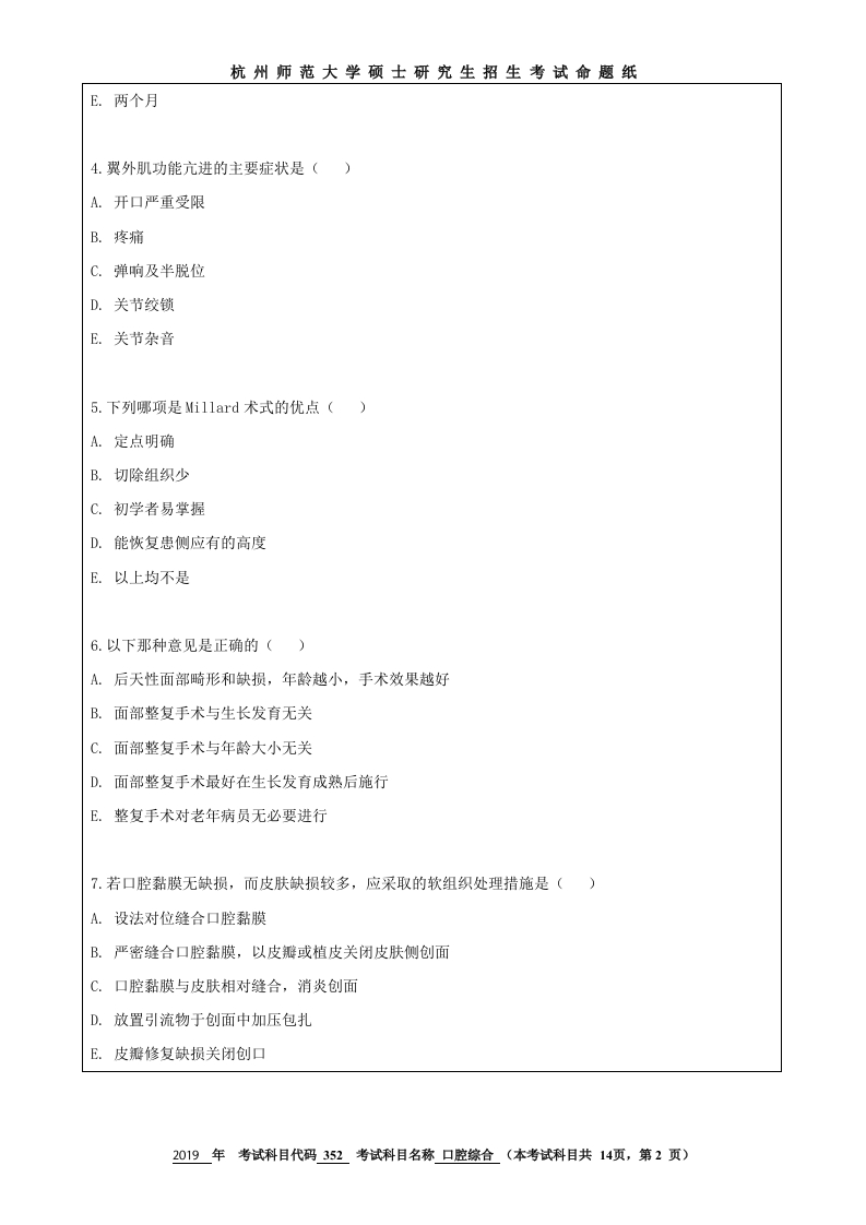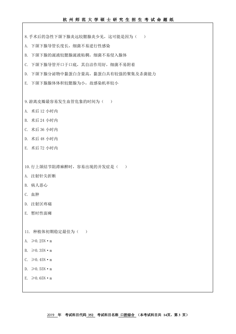 2019杭州师范大学352口腔综合-学习资源网 - 分享优质学习资料