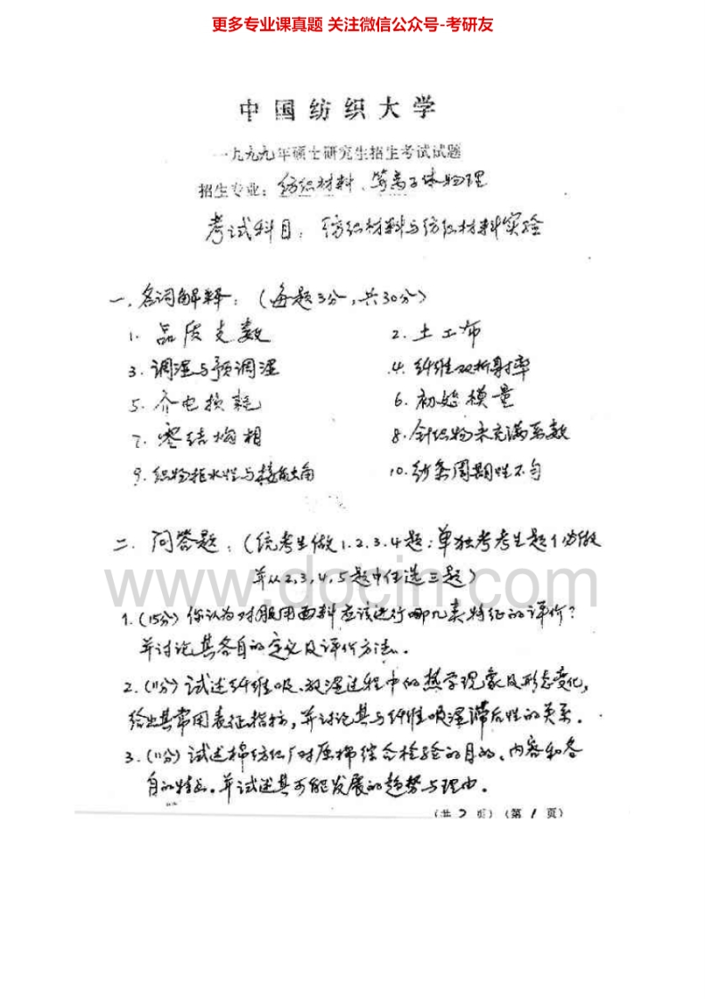 东华大学纺织材料学历年真题1998-2012考研真题汇编.Image.Marked-学习资源网 - 分享优质学习资料