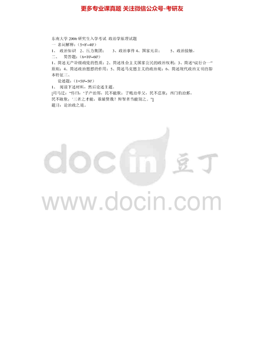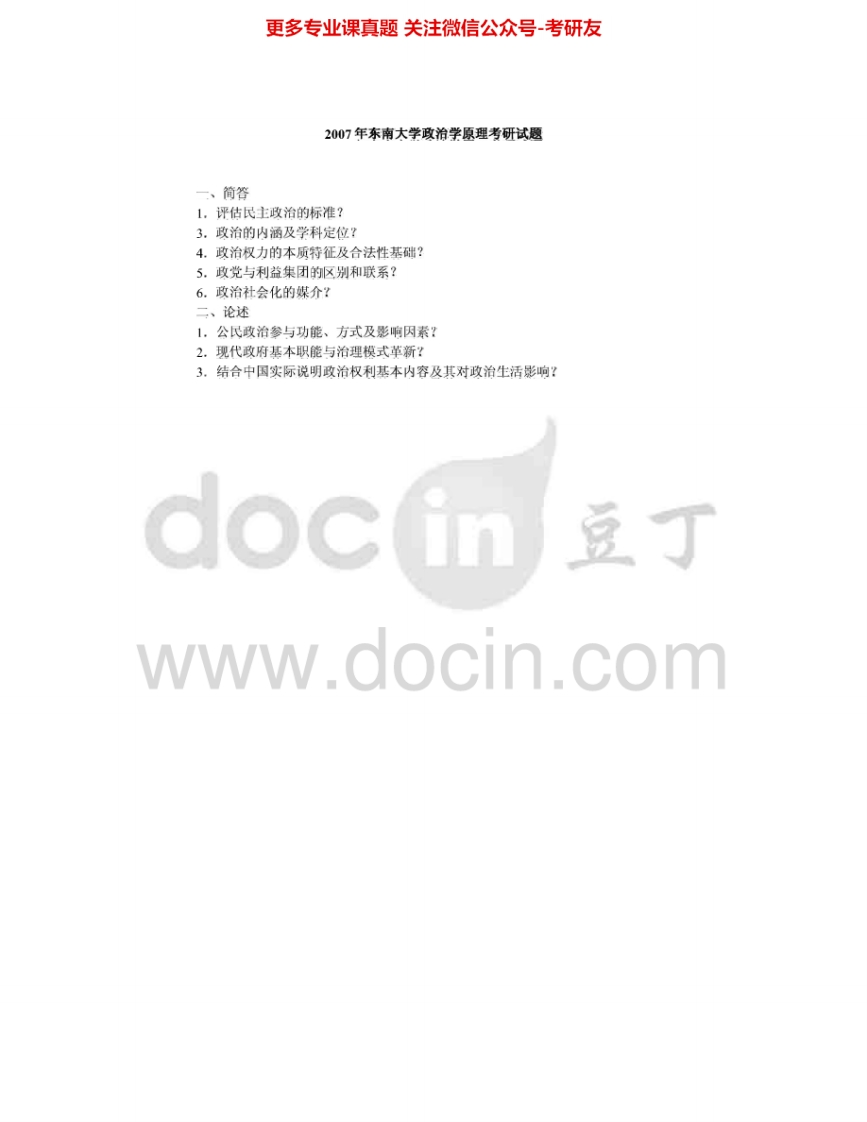 东南大学716政治学1998-2008考研真题汇编.Image.Marked猴哥6个月前发布关注私信0.47MB11页07961东南大学716政治学1998-2008考研真题汇编.Image.Marked此内容为免费资源,请登录后查看¥0 登录查看免费资源 第1页 / 共11页 第2页 / 共11页 第3页 / 共11页 该文档为免费文档,您可直接下载完整版进行阅读 © 版权声明文章版权归作者所有,未经允许请勿转载。THE END《东南大学》(716)公共管理学考研资料考研专业课 喜欢就支持一下吧点赞61赞赏 分享QQ空间微博QQ好友海报分享复制链接收藏