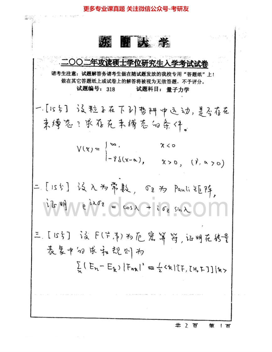 东南大学715量子力学2001-2007考研真题汇编.Image.Marked猴哥6个月前发布关注私信4.10MB15页07929东南大学715量子力学2001-2007考研真题汇编.Image.Marked此内容为免费资源,请登录后查看¥0 登录查看免费资源 第1页 / 共15页 第2页 / 共15页 第3页 / 共15页 该文档为免费文档,您可直接下载完整版进行阅读 © 版权声明文章版权归作者所有,未经允许请勿转载。THE END《东南大学》(715)量子力学考研资料考研专业课 喜欢就支持一下吧点赞29赞赏 分享QQ空间微博QQ好友海报分享复制链接收藏