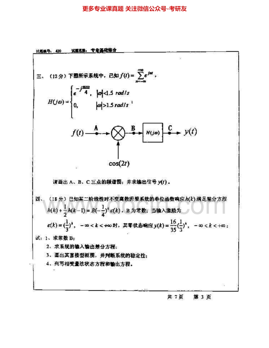 东南大学920专业基础综合(信号与系统、数字电路)2003-2006考研真题汇编.Image.Marked猴哥6个月前发布关注私信5.14MB28页06038东南大学920专业基础综合(信号与系统、数字电路)2003-2006考研真题汇编.Image.Marked此内容为免费资源,请登录后查看¥0 登录查看免费资源 第1页 / 共28页 第2页 / 共28页 第3页 / 共28页 该文档为免费文档,您可直接下载完整版进行阅读 © 版权声明文章版权归作者所有,未经允许请勿转载。THE END《东南大学》(920)专业基础综合(信号与系统、数字电路)考研资料考研专业课 喜欢就支持一下吧点赞38赞赏 分享QQ空间微博QQ好友海报分享复制链接收藏
