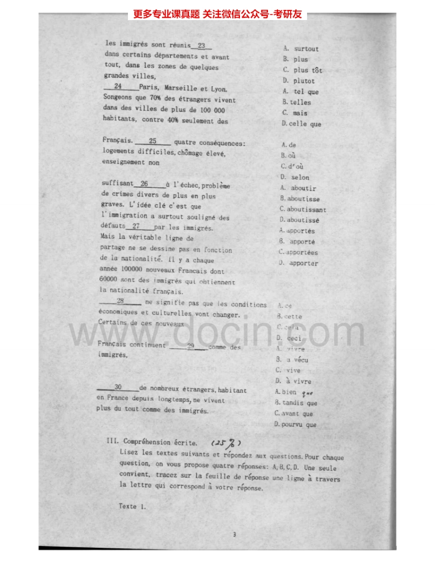东南大学248法语(外)2003-2004其中2003有答案考研真题汇编.Image.Marked猴哥6个月前发布关注私信10.84MB17页09411东南大学248法语(外)2003-2004其中2003有答案考研真题汇编.Image.Marked此内容为免费资源,请登录后查看¥0 登录查看免费资源 第1页 / 共17页 第2页 / 共17页 第3页 / 共17页 该文档为免费文档,您可直接下载完整版进行阅读 © 版权声明文章版权归作者所有,未经允许请勿转载。THE END考研专业课 喜欢就支持一下吧点赞11赞赏 分享QQ空间微博QQ好友海报分享复制链接收藏