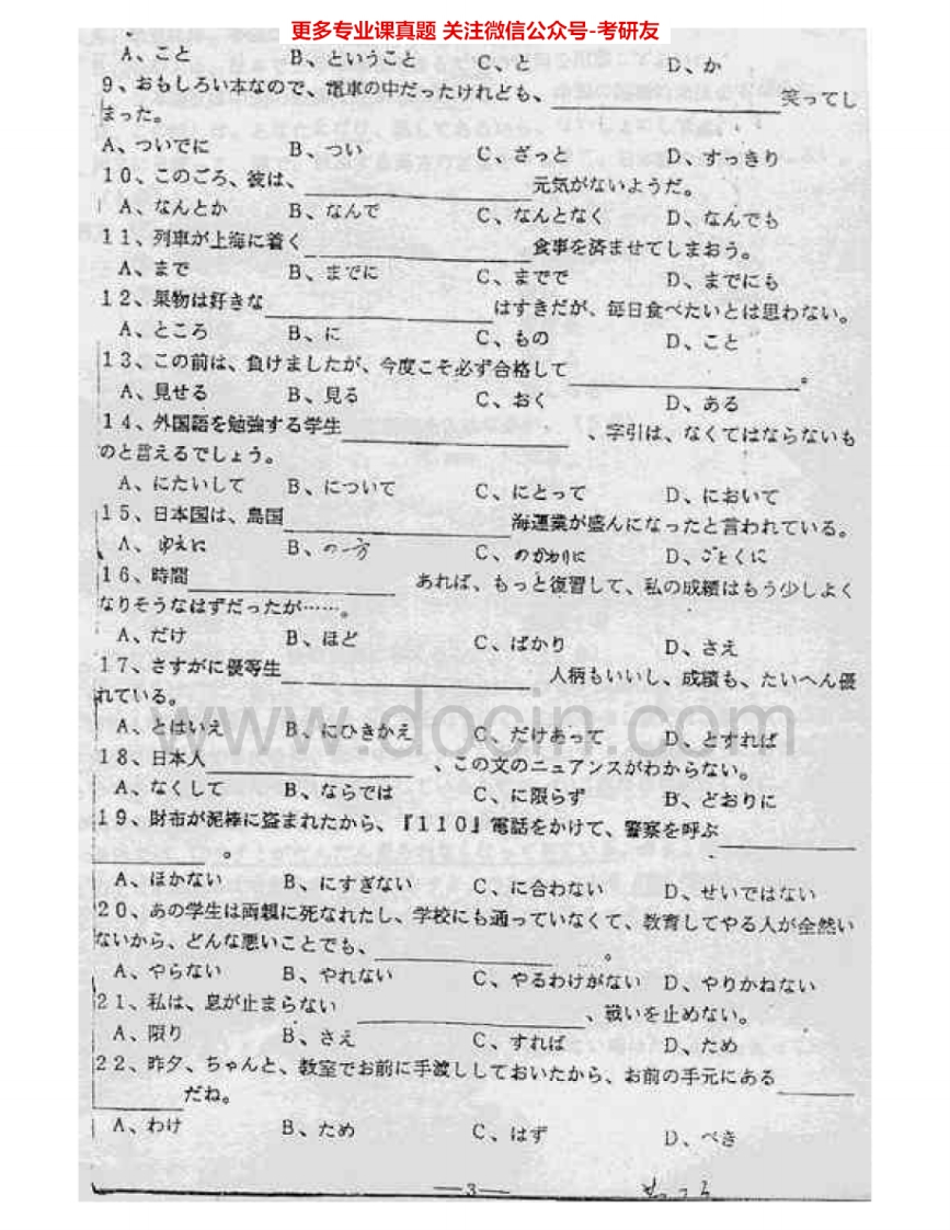 东南大学246日语(外)1999-2004考研真题汇编.Image.Marked猴哥6个月前发布关注私信21.70MB39页06318东南大学246日语(外)1999-2004考研真题汇编.Image.Marked此内容为免费资源,请登录后查看¥0 登录查看免费资源 第1页 / 共39页 第2页 / 共39页 第3页 / 共39页 该文档为免费文档,您可直接下载完整版进行阅读 © 版权声明文章版权归作者所有,未经允许请勿转载。THE END考研专业课 喜欢就支持一下吧点赞18赞赏 分享QQ空间微博QQ好友海报分享复制链接收藏