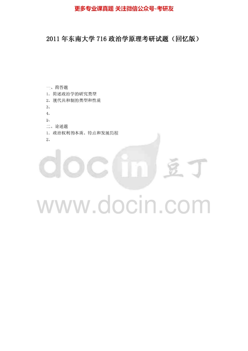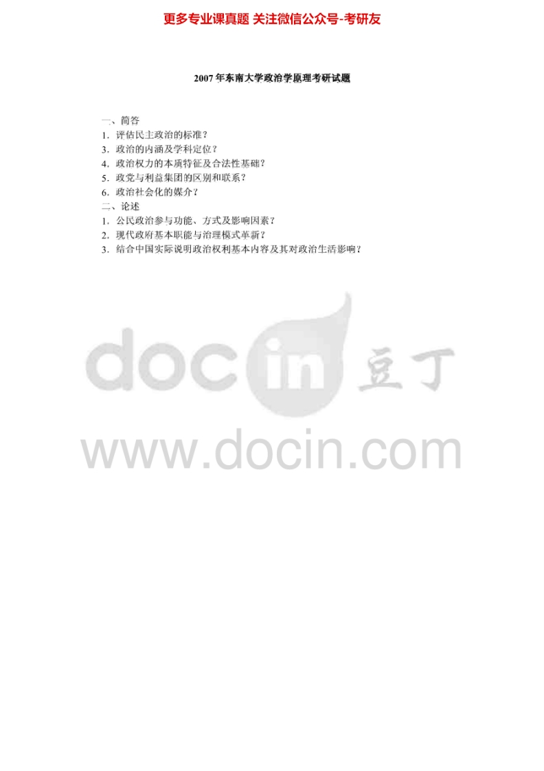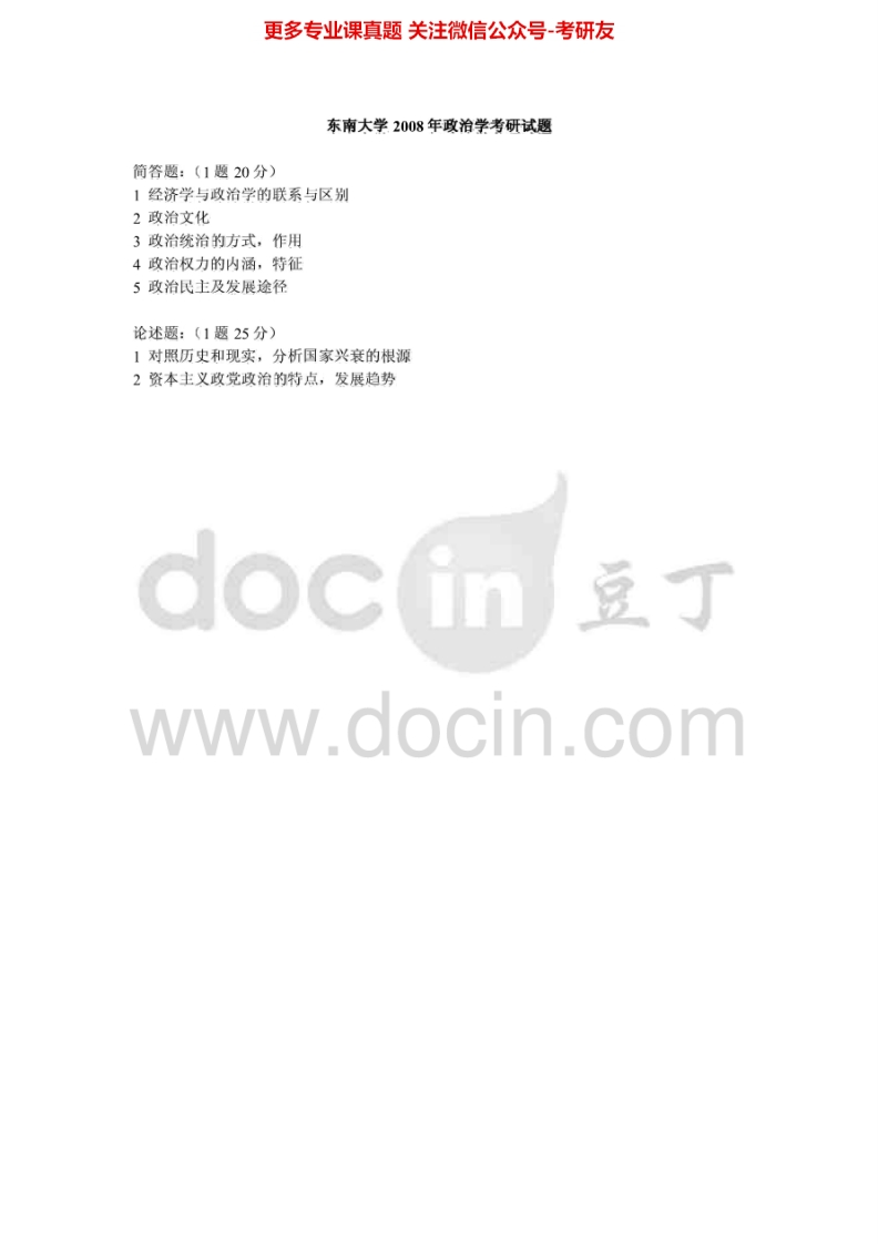 东南大学政治学历年真题1998-2008、2011考研真题汇编.Image.Marked-学习资源网 - 分享优质学习资料