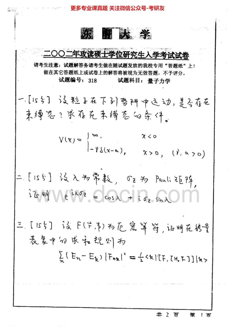 东南大学量子力学2001-2007考研真题汇编.Image.Marked猴哥6个月前发布关注私信4.80MB15页03112东南大学量子力学2001-2007考研真题汇编.Image.Marked此内容为免费资源,请登录后查看¥0 登录查看免费资源 第1页 / 共15页 第2页 / 共15页 第3页 / 共15页 该文档为免费文档,您可直接下载完整版进行阅读 © 版权声明文章版权归作者所有,未经允许请勿转载。THE END考研专业课 喜欢就支持一下吧点赞12赞赏 分享QQ空间微博QQ好友海报分享复制链接收藏