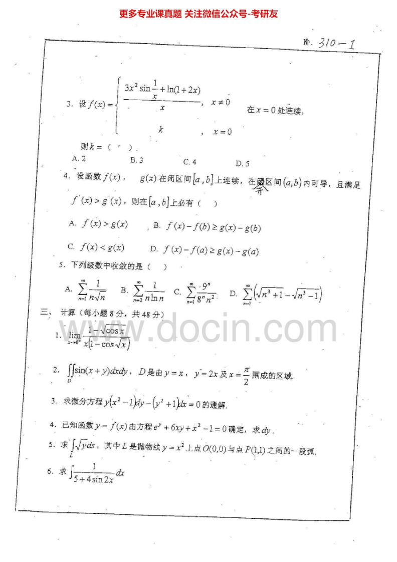 北京科技大学610单独考试数学2003-2004、2008-2014考研真题猴哥6个月前发布关注私信3.75MB23页06338北京科技大学610单独考试数学2003-2004、2008-2014考研真题此内容为免费资源,请登录后查看¥0 登录查看免费资源 第1页 / 共23页 第2页 / 共23页 第3页 / 共23页 该文档为免费文档,您可直接下载完整版进行阅读 © 版权声明文章版权归作者所有,未经允许请勿转载。THE END《北京科技大学》(610)单独考试数学考研资料考研专业课 喜欢就支持一下吧点赞38赞赏 分享QQ空间微博QQ好友海报分享复制链接收藏