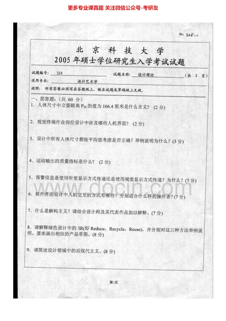 北京科技大学624设计理论历年真题2004-2013考研真题-学习资源网 - 分享优质学习资料
