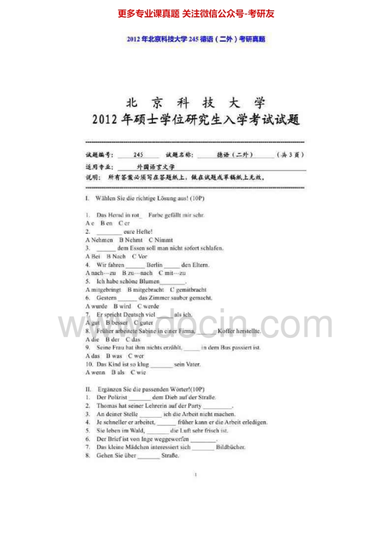 北京科技大学245德语(二外)2004-2013考研真题_1猴哥6个月前发布关注私信12.72MB35页08745北京科技大学245德语(二外)2004-2013考研真题_1此内容为免费资源,请登录后查看¥0 登录查看免费资源 第1页 / 共35页 第2页 / 共35页 第3页 / 共35页 该文档为免费文档,您可直接下载完整版进行阅读 © 版权声明文章版权归作者所有,未经允许请勿转载。THE END考研专业课 喜欢就支持一下吧点赞45赞赏 分享QQ空间微博QQ好友海报分享复制链接收藏