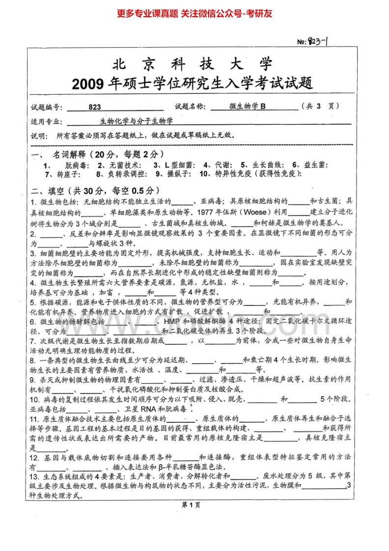 北京科技大学823微生物学B2008-2014考研真题猴哥6个月前发布关注私信4.71MB26页03916北京科技大学823微生物学B2008-2014考研真题此内容为免费资源,请登录后查看¥0 登录查看免费资源 第1页 / 共26页 第2页 / 共26页 第3页 / 共26页 该文档为免费文档,您可直接下载完整版进行阅读 © 版权声明文章版权归作者所有,未经允许请勿转载。THE END《北京科技大学》(823)微生物学考研资料考研专业课 喜欢就支持一下吧点赞16赞赏 分享QQ空间微博QQ好友海报分享复制链接收藏