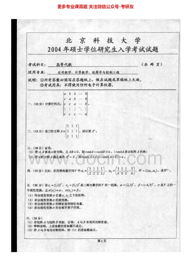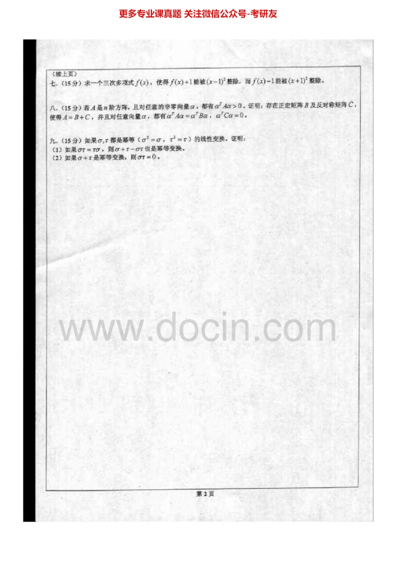 北京科技大学825高等代数2003-2014考研真题.Image.Marked猴哥6个月前发布关注私信5.91MB23页05251北京科技大学825高等代数2003-2014考研真题.Image.Marked此内容为免费资源,请登录后查看¥0 登录查看免费资源 第1页 / 共23页 第2页 / 共23页 第3页 / 共23页 该文档为免费文档,您可直接下载完整版进行阅读 © 版权声明文章版权归作者所有,未经允许请勿转载。THE END考研专业课 喜欢就支持一下吧点赞51赞赏 分享QQ空间微博QQ好友海报分享复制链接收藏