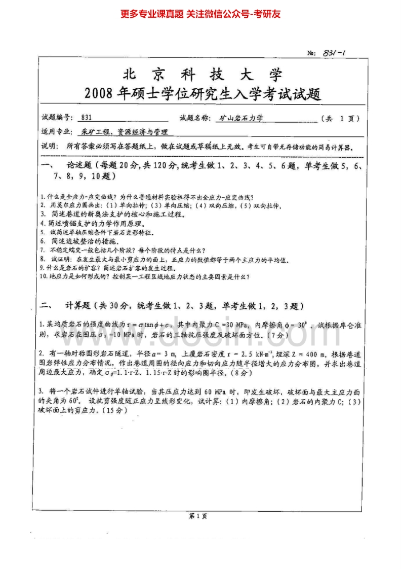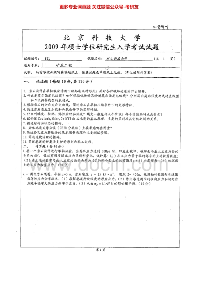 北京科技大学831矿山岩石力学2007-2014考研真题考研真题猴哥6个月前发布关注私信1.59MB10页03552北京科技大学831矿山岩石力学2007-2014考研真题考研真题此内容为免费资源,请登录后查看¥0 登录查看免费资源 第1页 / 共10页 第2页 / 共10页 第3页 / 共10页 该文档为免费文档,您可直接下载完整版进行阅读 © 版权声明文章版权归作者所有,未经允许请勿转载。THE END《北京科技大学》(831)矿山岩石力学考研资料考研专业课 喜欢就支持一下吧点赞52赞赏 分享QQ空间微博QQ好友海报分享复制链接收藏