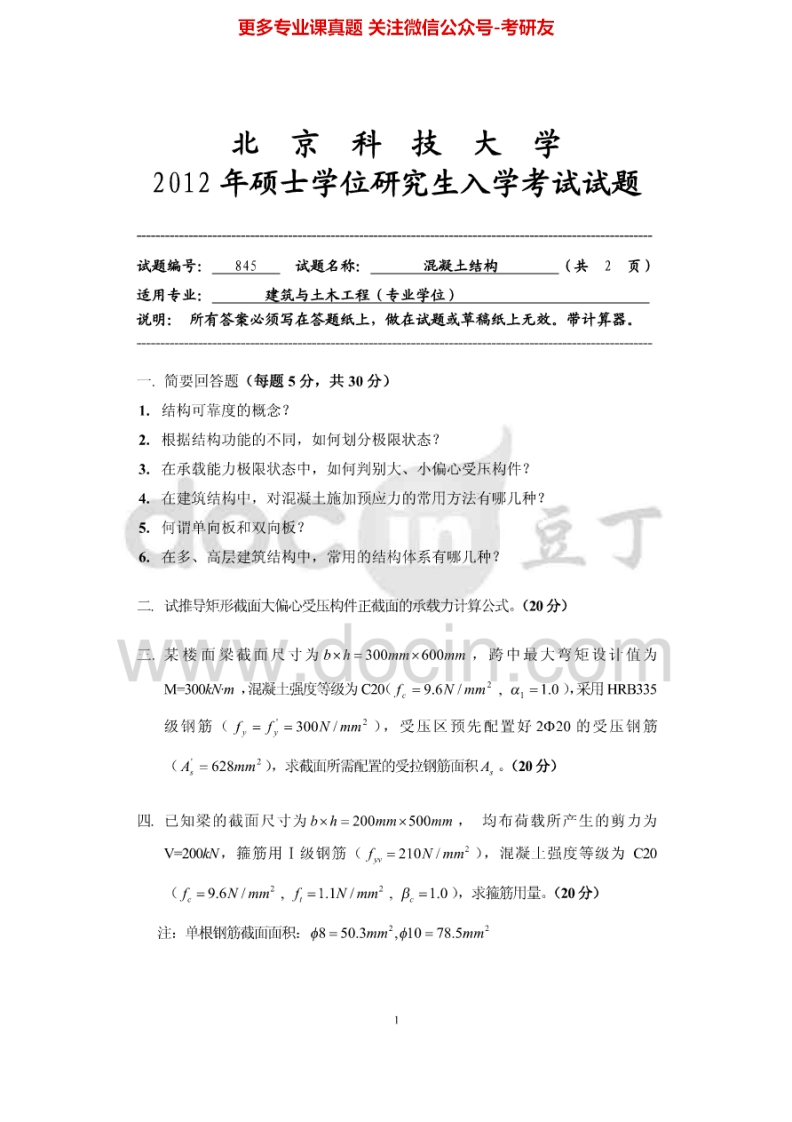 北京科技大学845混凝土结构2011-2014考研真题猴哥6个月前发布关注私信0.48MB7页09433北京科技大学845混凝土结构2011-2014考研真题此内容为免费资源,请登录后查看¥0 登录查看免费资源 第1页 / 共7页 第2页 / 共7页 第3页 / 共7页 该文档为免费文档,您可直接下载完整版进行阅读 © 版权声明文章版权归作者所有,未经允许请勿转载。THE END考研专业课 喜欢就支持一下吧点赞33赞赏 分享QQ空间微博QQ好友海报分享复制链接收藏