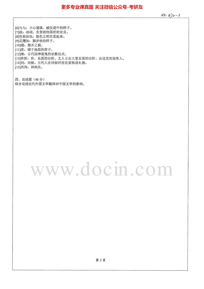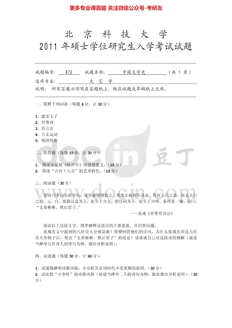 北京科技大学872中国文学史2010-2013考研真题猴哥6个月前发布关注私信0.56MB5页03263北京科技大学872中国文学史2010-2013考研真题此内容为免费资源,请登录后查看¥0 登录查看免费资源 第1页 / 共5页 第2页 / 共5页 第3页 / 共5页 该文档为免费文档,您可直接下载完整版进行阅读 © 版权声明文章版权归作者所有,未经允许请勿转载。THE END考研专业课 喜欢就支持一下吧点赞63赞赏 分享QQ空间微博QQ好友海报分享复制链接收藏