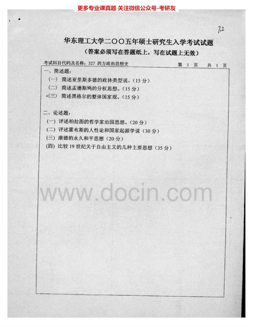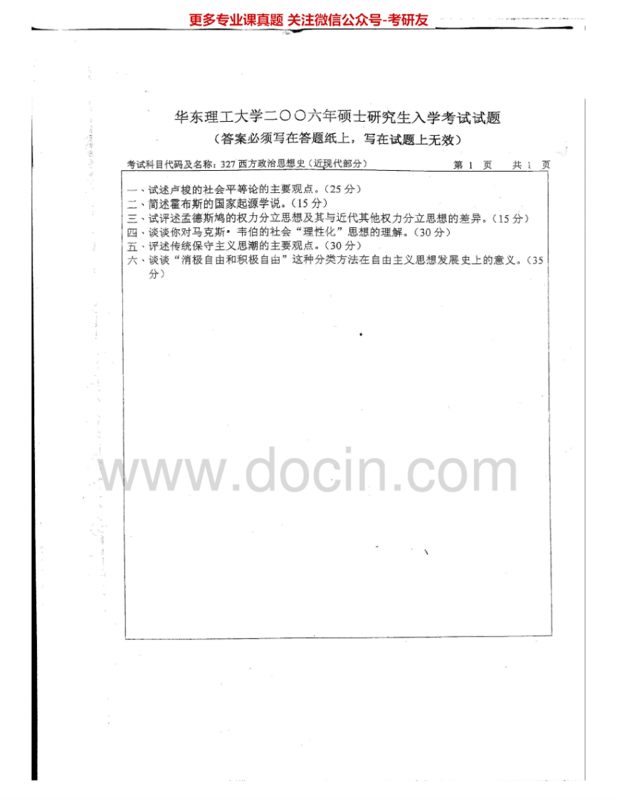华东理工大学615西方政治思想史(近、现代部分)2004-2006考研真题汇编.Image.Marked猴哥6个月前发布关注私信1.08MB3页09312华东理工大学615西方政治思想史(近、现代部分)2004-2006考研真题汇编.Image.Marked此内容为免费资源,请登录后查看¥0 登录查看免费资源 第1页 / 共3页 第2页 / 共3页 第3页 / 共3页 已完成全部阅读,共3页 © 版权声明文章版权归作者所有,未经允许请勿转载。THE END考研专业课 喜欢就支持一下吧点赞12赞赏 分享QQ空间微博QQ好友海报分享复制链接收藏