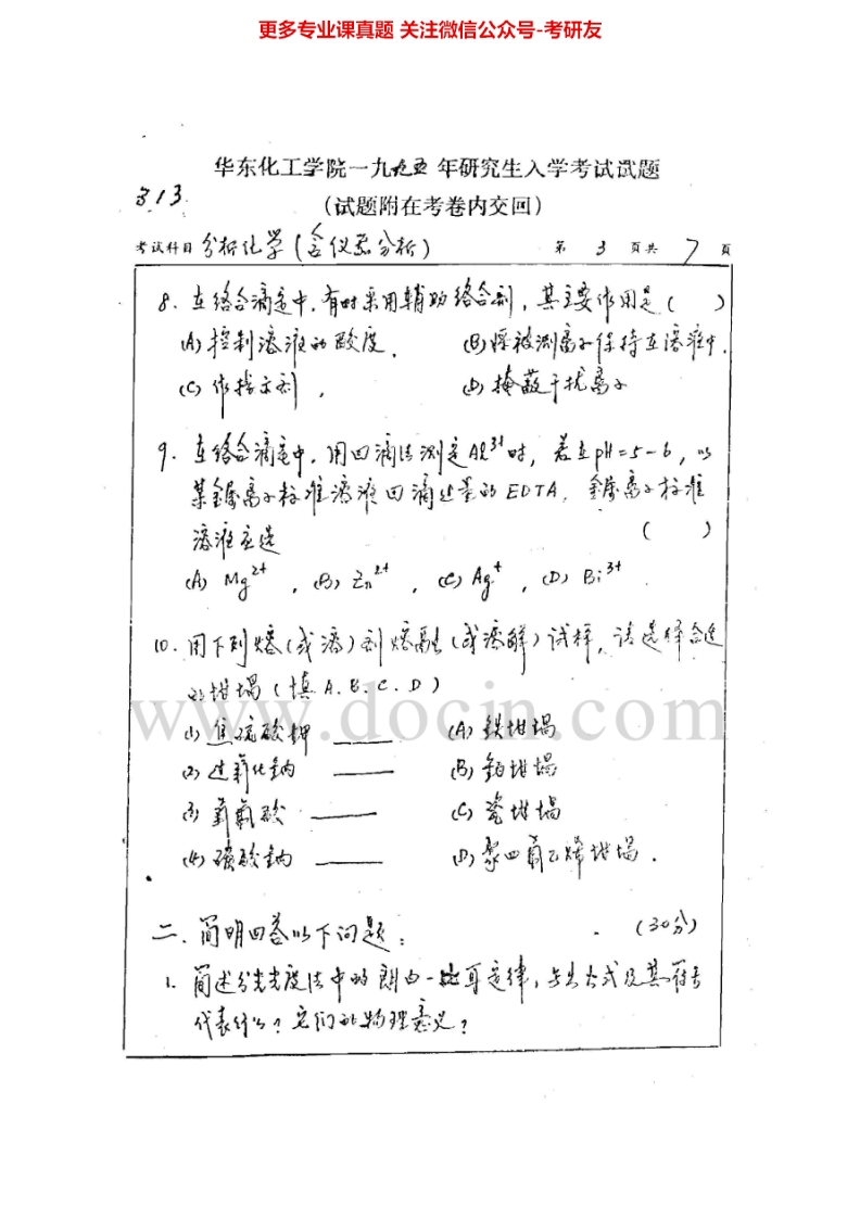 华东理工大学分析化学95-96、98-02、07、回忆10、12考研真题汇编.Image.Marked猴哥6个月前发布关注私信14.64MB51页04020华东理工大学分析化学95-96、98-02、07、回忆10、12考研真题汇编.Image.Marked此内容为免费资源,请登录后查看¥0 登录查看免费资源 第1页 / 共51页 第2页 / 共51页 第3页 / 共51页 该文档为免费文档,您可直接下载完整版进行阅读 © 版权声明文章版权归作者所有,未经允许请勿转载。THE END考研专业课 喜欢就支持一下吧点赞20赞赏 分享QQ空间微博QQ好友海报分享复制链接收藏