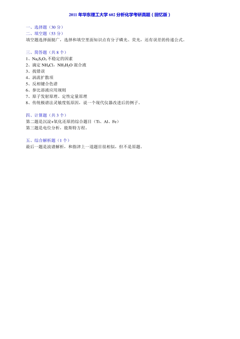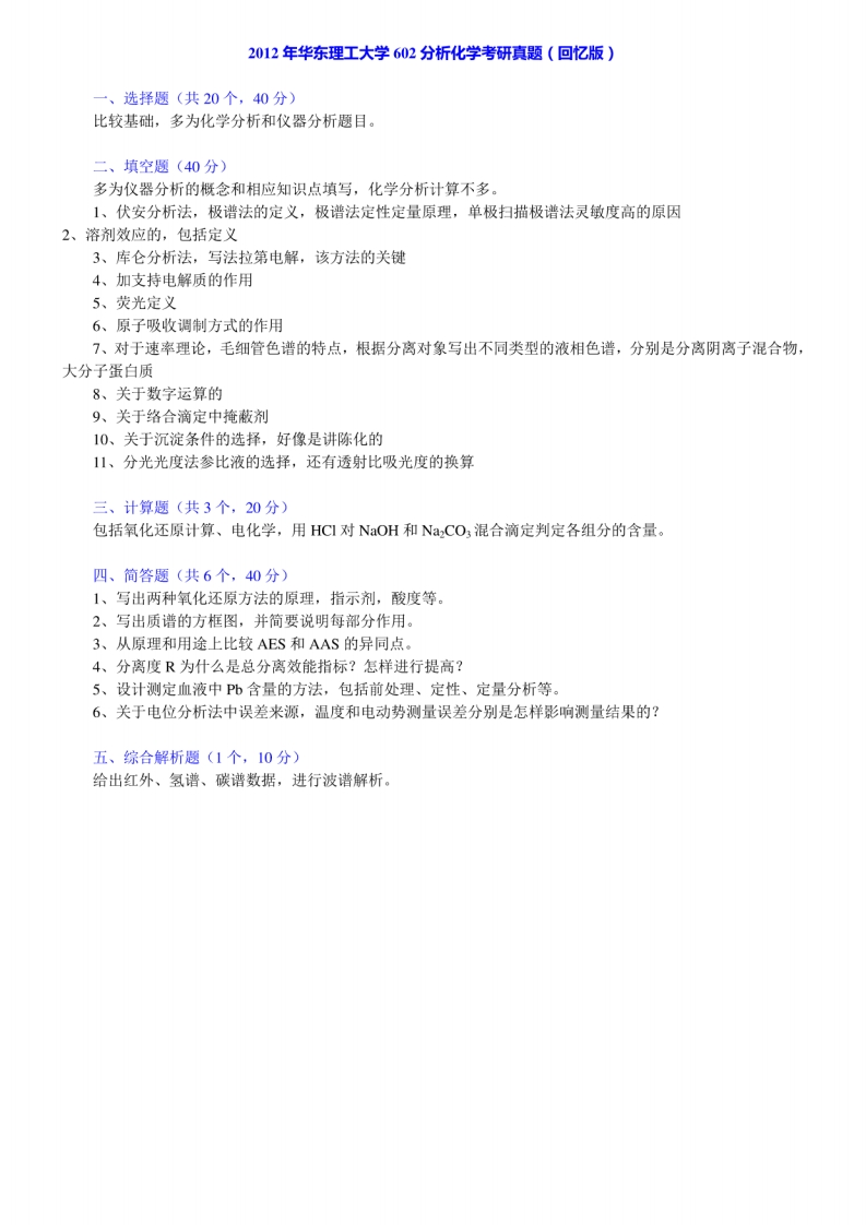 华东理工大学化学与分子工程学院602分析化学历年考研真题汇编(含部分答案)[2-37]猴哥6个月前发布关注私信23MB36页06356华东理工大学化学与分子工程学院602分析化学历年考研真题汇编(含部分答案)[2-37]此内容为免费资源,请登录后查看¥0 登录查看免费资源 第1页 / 共36页 第2页 / 共36页 第3页 / 共36页 该文档为免费文档,您可直接下载完整版进行阅读 © 版权声明文章版权归作者所有,未经允许请勿转载。THE END《华东理工大学》(602)分析化学考研资料考研专业课 喜欢就支持一下吧点赞56赞赏 分享QQ空间微博QQ好友海报分享复制链接收藏