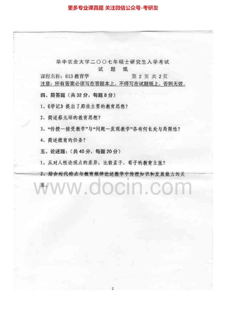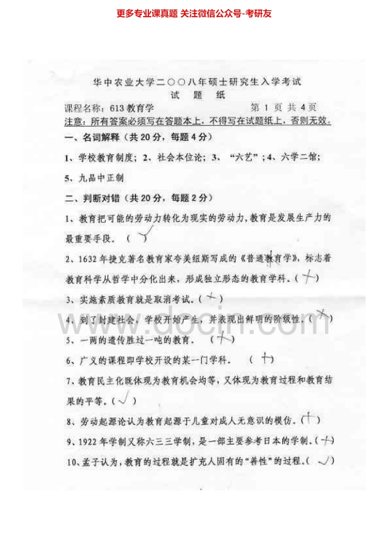 华中农业大学613教育学2007-2015考研真题汇编.Image.Marked-学习资源网 - 分享优质学习资料