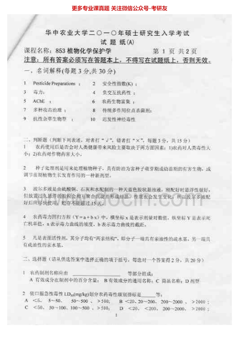 华中农业大学853植物化学保护学2009-2015考研真题汇编.Image.Marked猴哥6个月前发布关注私信6.23MB22页08729华中农业大学853植物化学保护学2009-2015考研真题汇编.Image.Marked此内容为免费资源,请登录后查看¥0 登录查看免费资源 第1页 / 共22页 第2页 / 共22页 第3页 / 共22页 该文档为免费文档,您可直接下载完整版进行阅读 © 版权声明文章版权归作者所有,未经允许请勿转载。THE END考研专业课 喜欢就支持一下吧点赞29赞赏 分享QQ空间微博QQ好友海报分享复制链接收藏