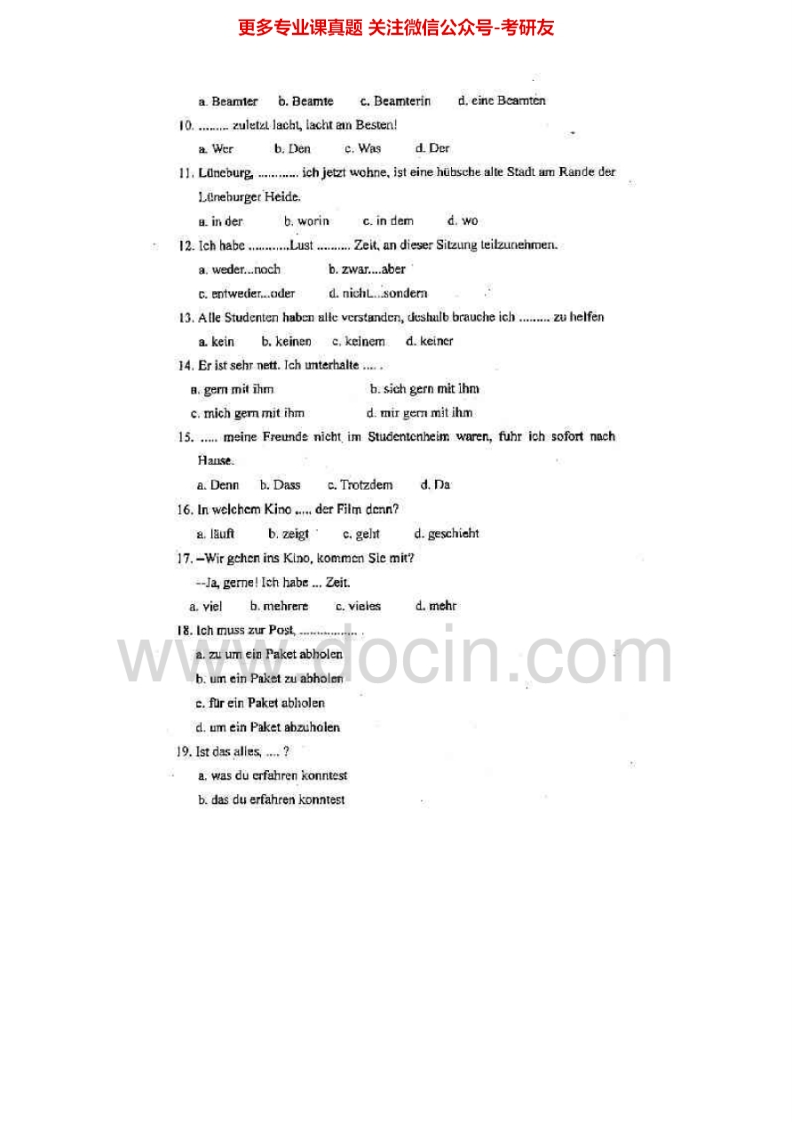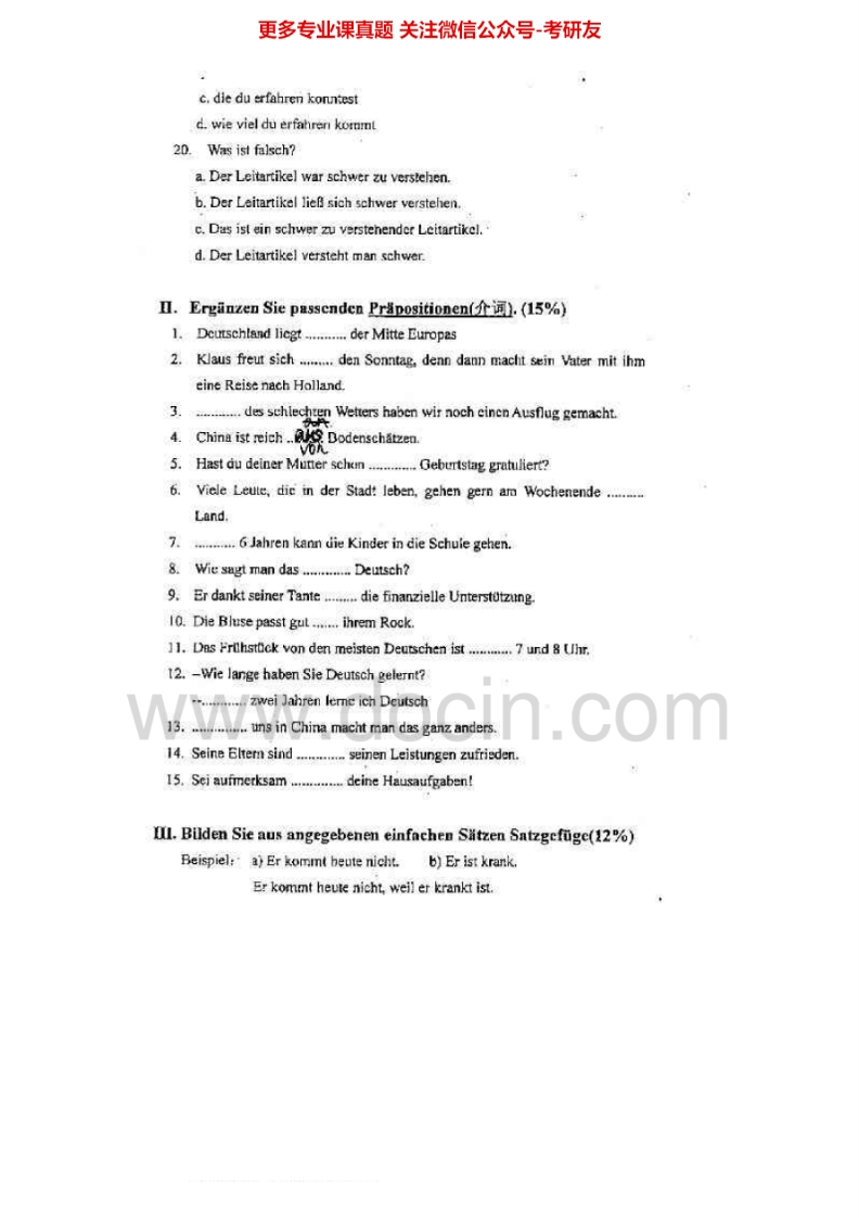 华中师范大学244德语2000、2003-2008考研真题汇编猴哥6个月前发布关注私信8.63MB39页09321华中师范大学244德语2000、2003-2008考研真题汇编此内容为免费资源,请登录后查看¥0 登录查看免费资源 第1页 / 共39页 第2页 / 共39页 第3页 / 共39页 该文档为免费文档,您可直接下载完整版进行阅读 © 版权声明文章版权归作者所有,未经允许请勿转载。THE END考研专业课 喜欢就支持一下吧点赞21赞赏 分享QQ空间微博QQ好友海报分享复制链接收藏