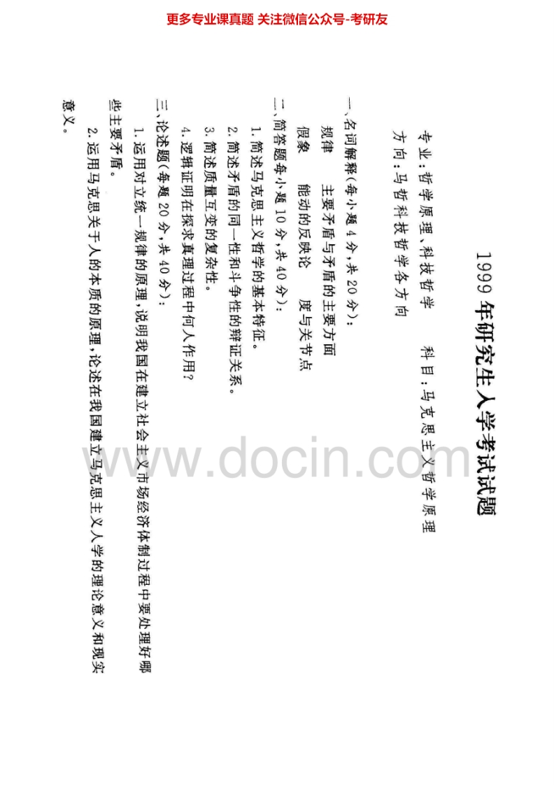 华中师范大学701马克思主义哲学原理1998-1999、2000、2002、2007-2008考研真题汇编.Image.Marked