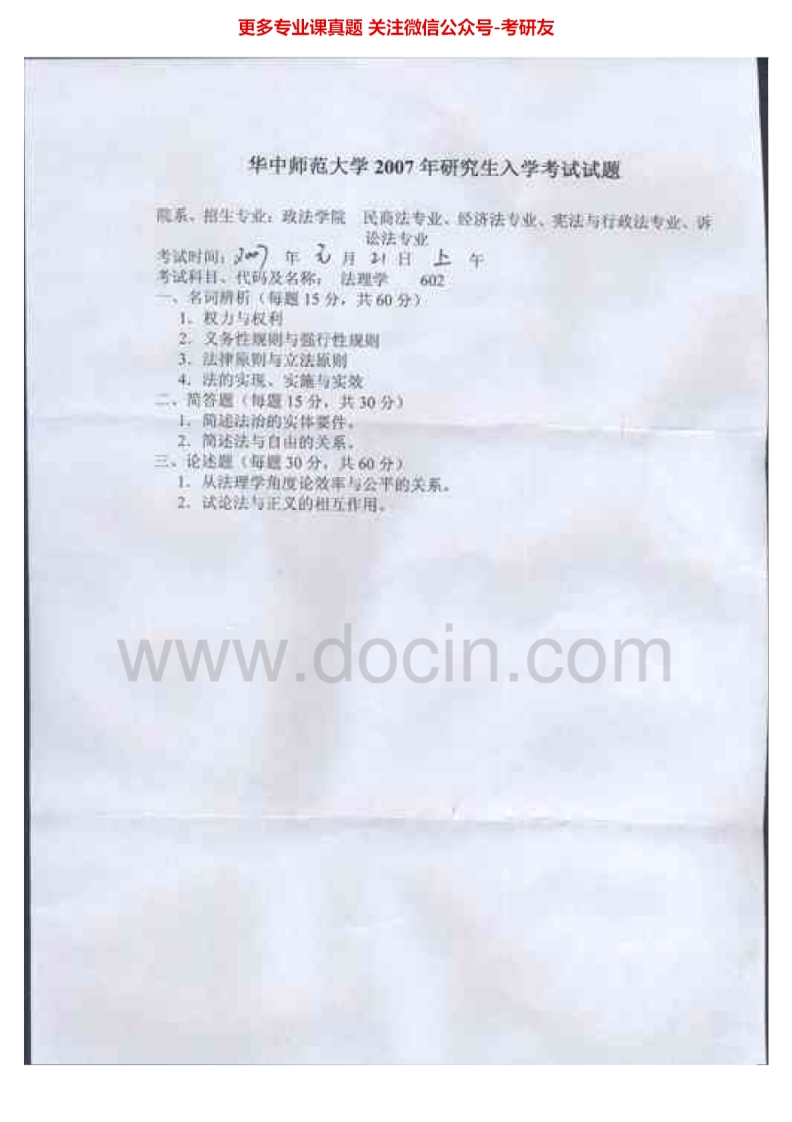 华中师范大学702法理学2006-2008考研真题汇编.Image.Marked猴哥6个月前发布关注私信0.62MB3页03762华中师范大学702法理学2006-2008考研真题汇编.Image.Marked此内容为免费资源,请登录后查看¥0 登录查看免费资源 第1页 / 共3页 第2页 / 共3页 第3页 / 共3页 已完成全部阅读,共3页 © 版权声明文章版权归作者所有,未经允许请勿转载。THE END《华中师范大学》(702)法理学考研资料考研专业课 喜欢就支持一下吧点赞62赞赏 分享QQ空间微博QQ好友海报分享复制链接收藏